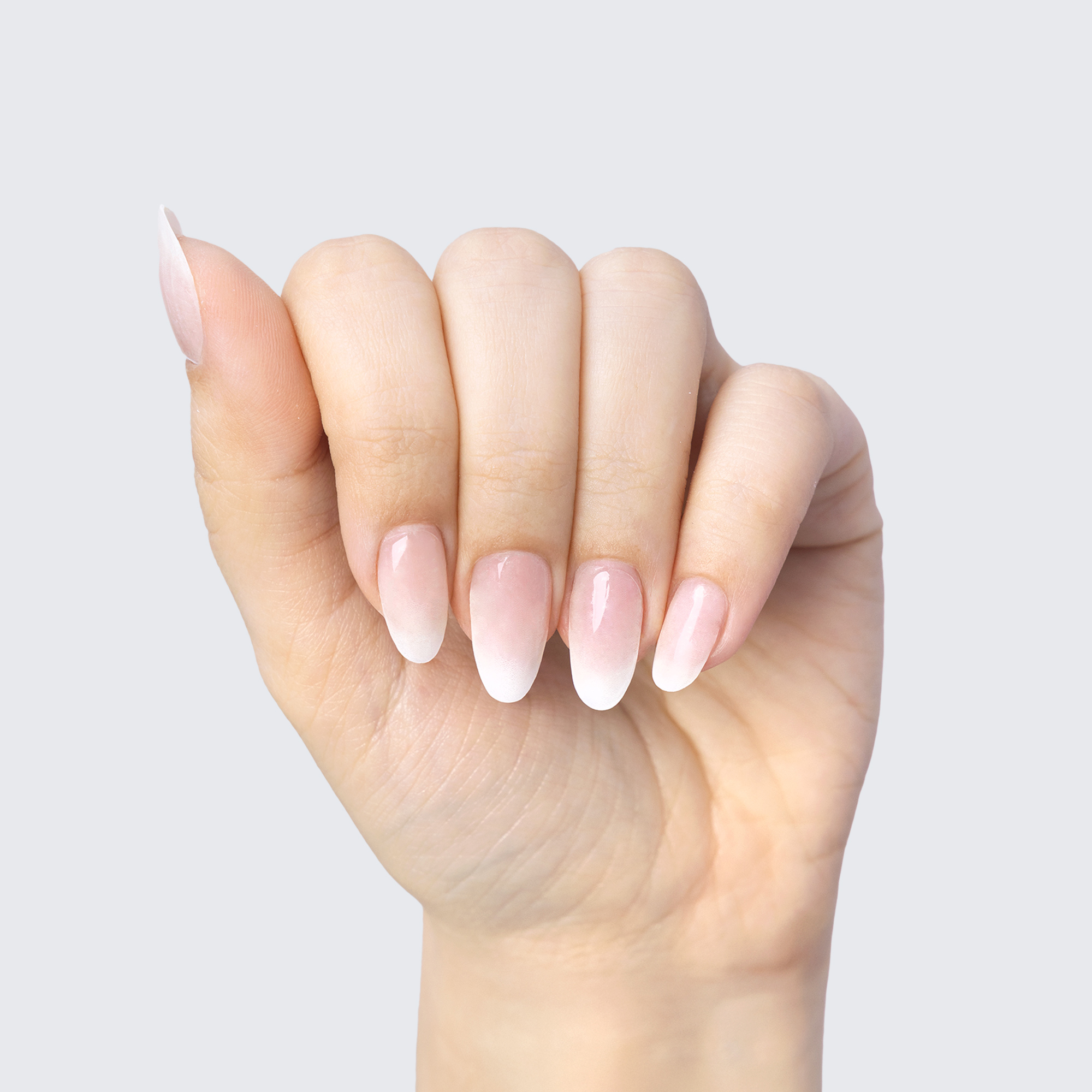 Ombré French tip. White. Opaque to translucent. Neutral undertone.