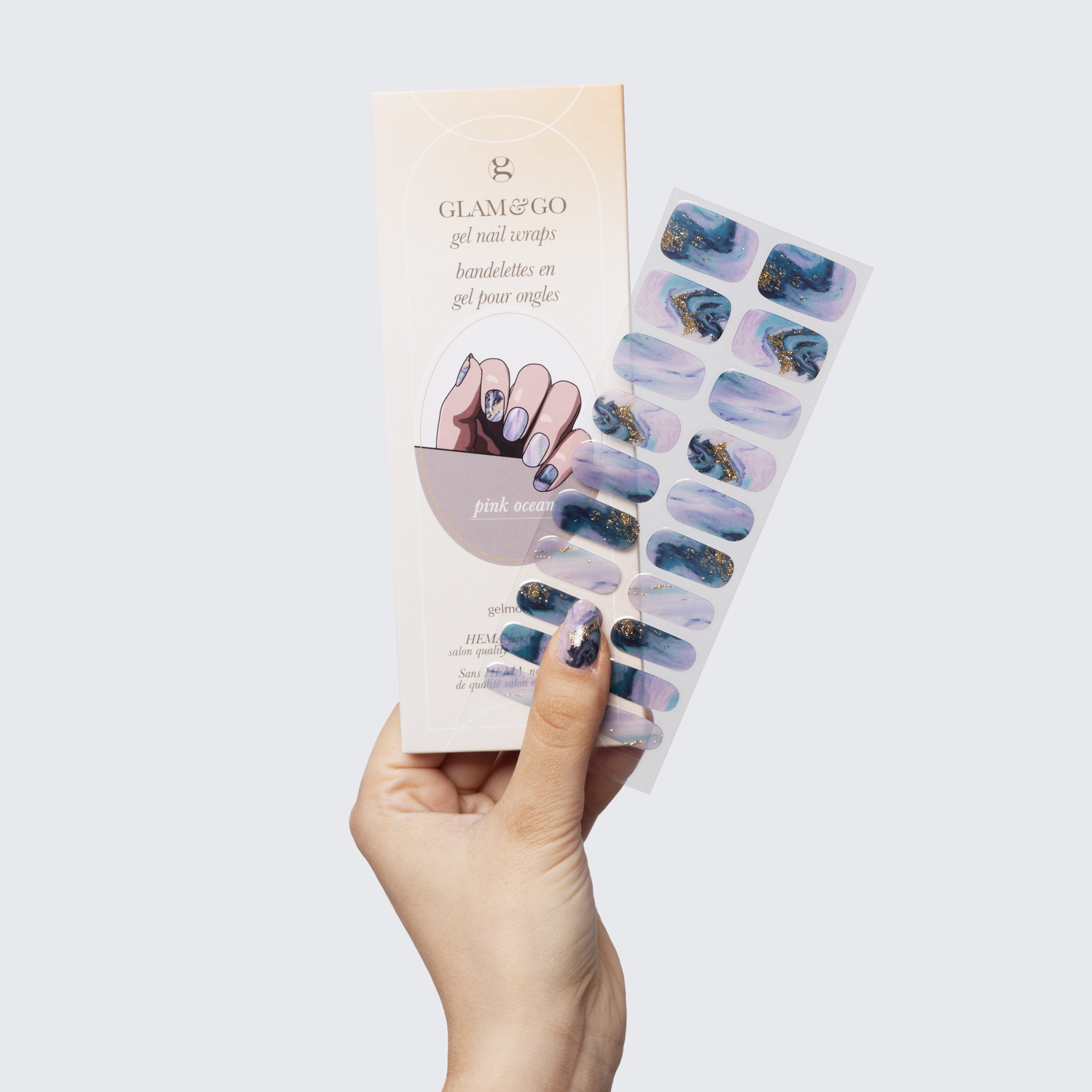 Plus, not only do GLAM & GO gel nail wraps provide the same glossy finish you know and love from our regular gel polish, but they are also HEMA FREE and have a wear time of up to 14+ days.