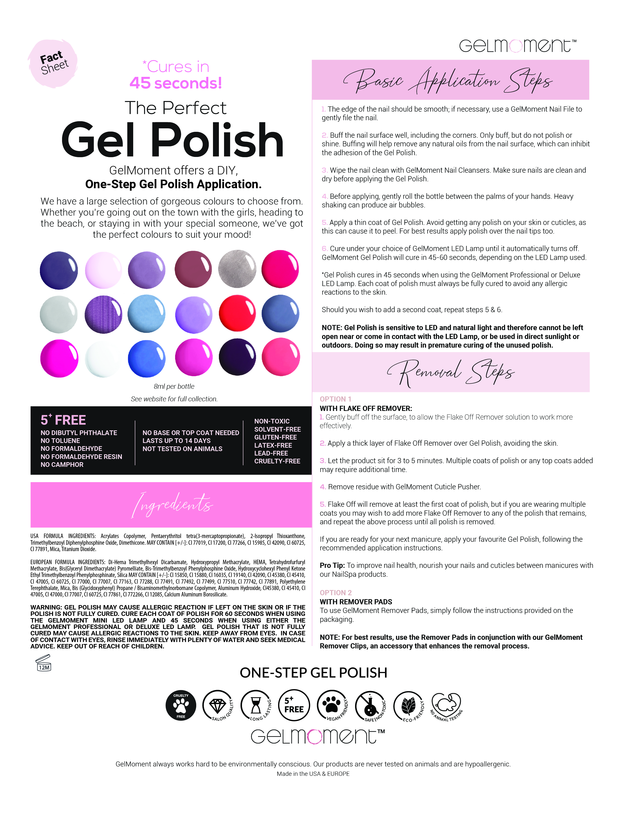 Made in Europe.  Actual gel polish colours may vary slightly from digital images.